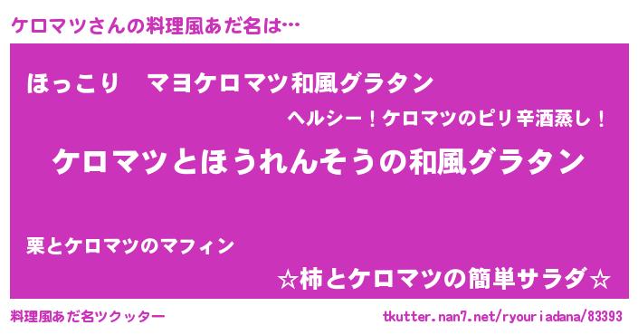 | ヒーロー風カッコイイあだ名 | 『仮面ケロダー』『最強戦士ケロマツ』 |