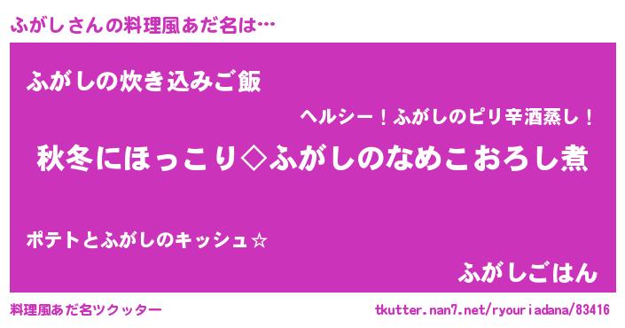 | 意味不明あだ名 | 『もやし科ふがし属』『自称ふがし』 |