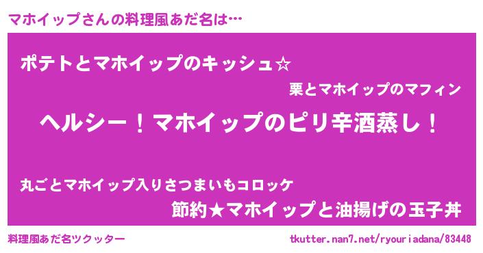 | 男性向けラノベタイトル風あだ名 | 『Re:マホイップから始める異世界生活』 |