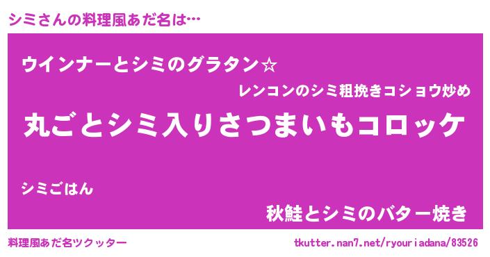 | 男性向けラノベタイトル風あだ名 | 『魔弾の王とシミ』『魔法科高校のシミ』 |
