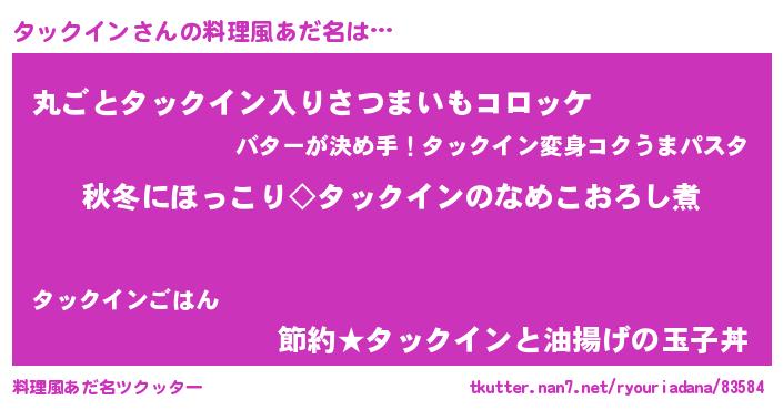 | 意味不明あだ名 | 『住所不定無職タックイン(50歳)』 |