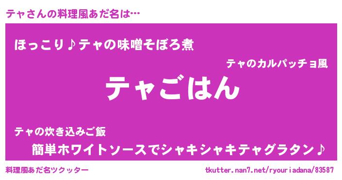| 男性向けラノベタイトル風あだ名 | 『転生したらテャだった件』『テャの憂鬱』 |