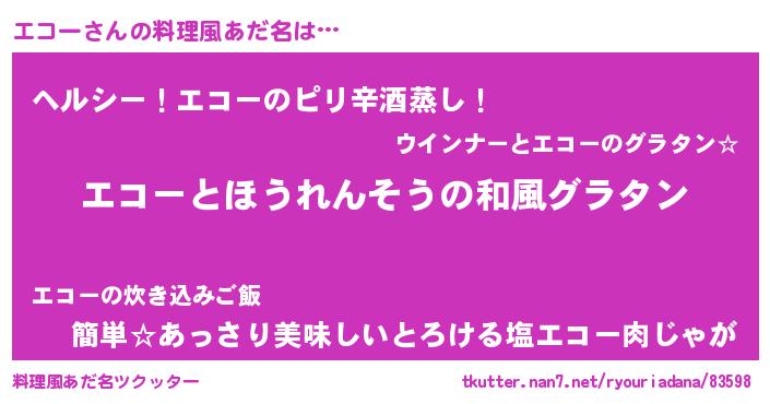 | 意味不明あだ名 | 『ニラ科エコー属』『自称エコー』 |