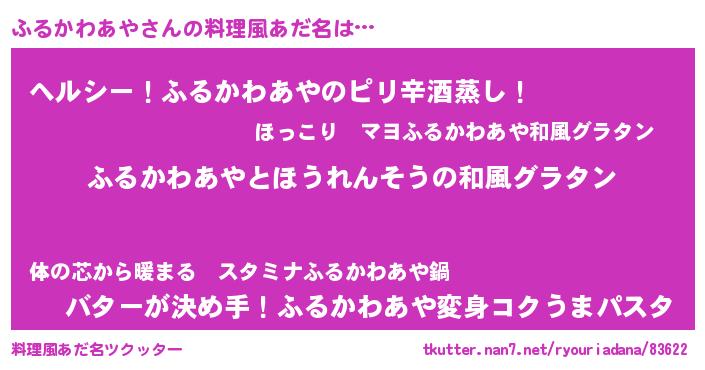 | 肩書あだ名 | 『ふるかわあや少将』『ふるかわあや総統』 |