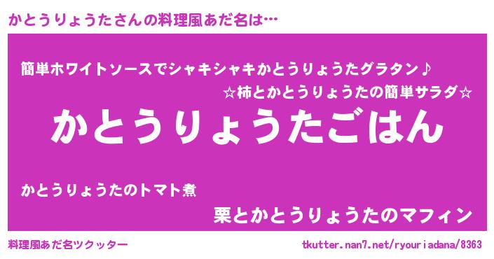 | ポケモン風あだ名 | 『カトキング』『ヒカトウリョウタ』 |