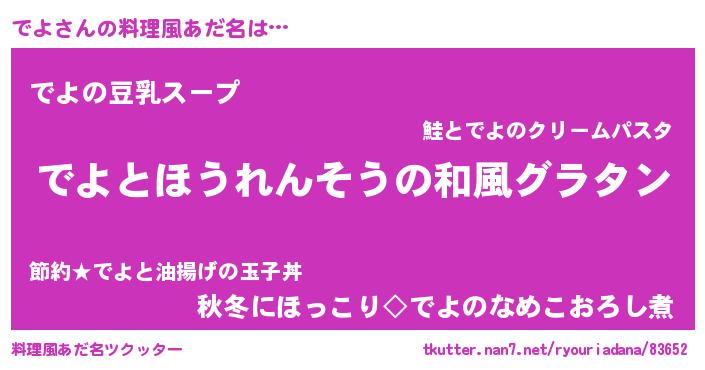 | 男性向けラノベタイトル風あだ名 | 『転生したらでよだった件』『でよの憂鬱』 |