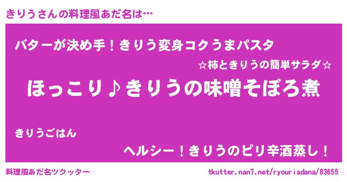 | 男性向けラノベタイトル風あだ名 | 『きりうの憂鬱』『キリウスレイヤー』 |