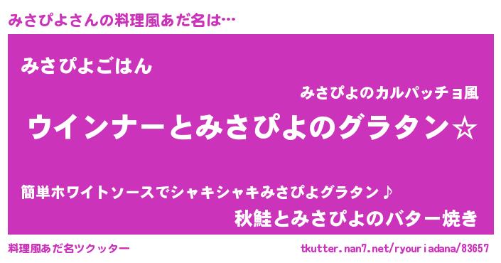 | 意味不明あだ名 | 『みさぴよフォーエバー』 |