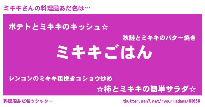 | 胡散臭い通販商品みたいなあだ名 | 『信頼と実績のサプリメント…その名も「ミキキ」』 |