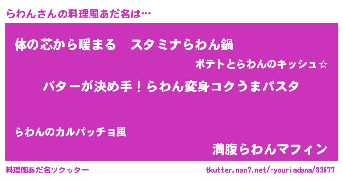 | 女子向けラノベタイトル風あだ名 | 『らわん恋絵巻』『らわんの雑貨屋さん』 |
