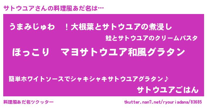 | 意味不明あだ名 | 『住所不定無職サトウユア(74歳)』 |