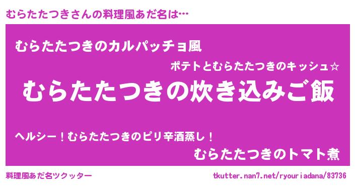 | 胡散臭い通販商品みたいなあだ名 | 『あなたにだけ特別に提供する世界で10本だけ現存している希少なブランデー…その名も「むらたたつき」』 |