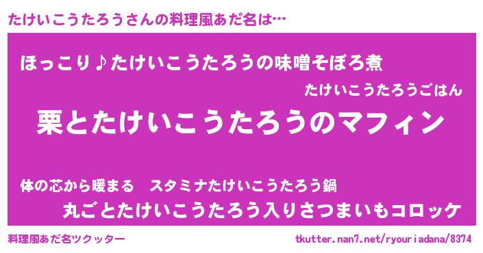 | ヒーロー風カッコイイあだ名 | 『スーパータケイコウタロウ』 |