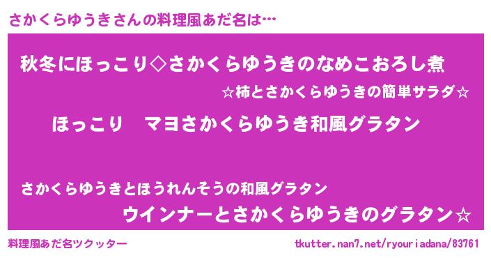 | ヘコむあだ名 | 『酢こんぶ』『さかくらゆうき(笑)』 |