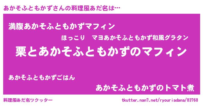 | 可愛いあだ名 | 『あかそふともかずママ』『ぽよあか』 |