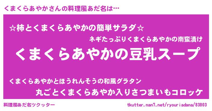 | 意味不明あだ名 | 『とにかく怪しいくまくらあやか』 |