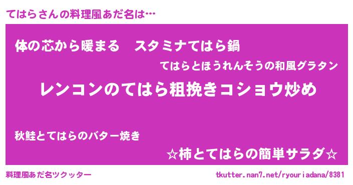 | 意味不明あだ名 | 『自称てはら』『てはらフォーエバー』 |