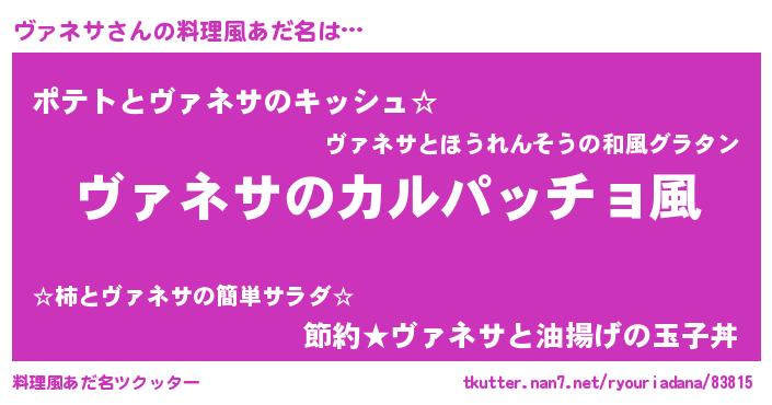 | 意味不明あだ名 | 『住所不定無職ヴァネサ(91歳)』 |
