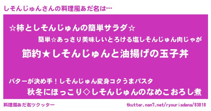 | 胡散臭い通販商品みたいなあだ名 | 『モテモテ間違いなしブレスレット…その名も「しそんじゅん」』 |