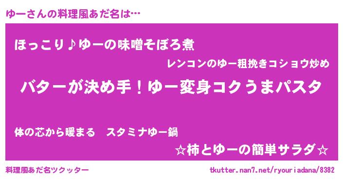 | 女子向けラノベタイトル風あだ名 | 『ゆー恋絵巻』『ゆーアンティーク』 |