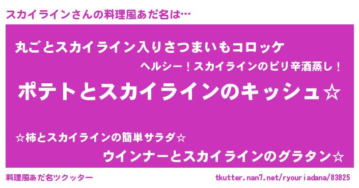 | 男性向けラノベタイトル風あだ名 | 『スカイラインの嫁は女の子じゃないと思った?』 |