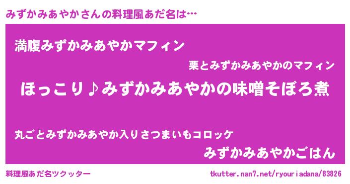 | ヘコむあだ名 | 『みずにゅー』『みずかみあやか(遠い目)』 |