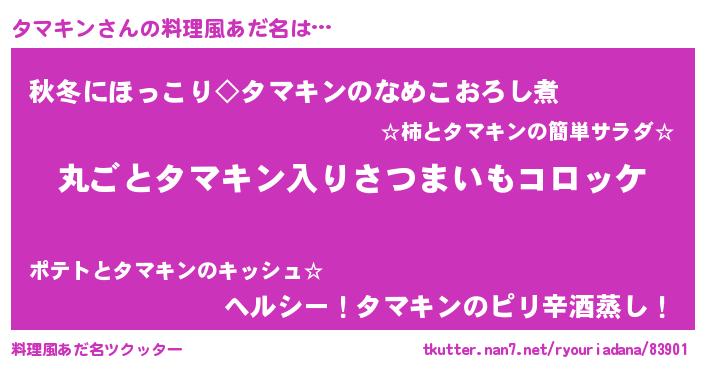 | ピコ太郎風あだ名 | 『タマ十郎』『ピタ十郎』『ピコタ郎』 |