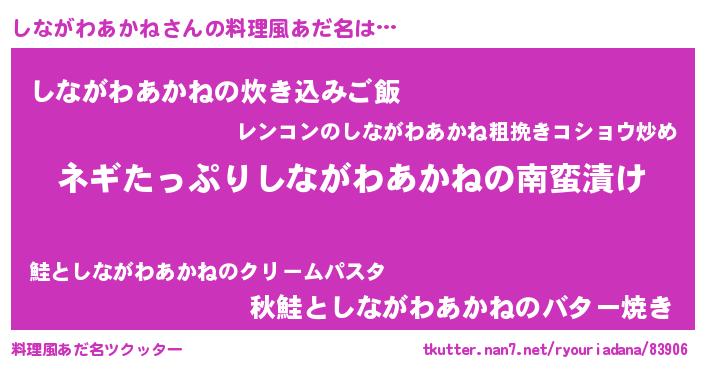 | ヘコむあだ名 | 『しなにゅー』『しながわあかね(笑)』 |