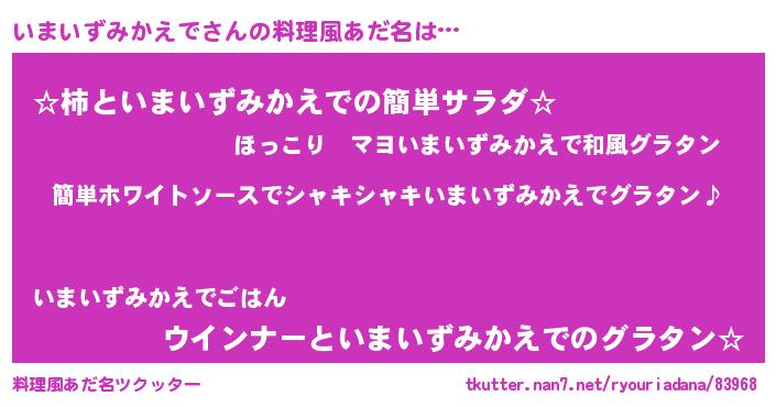 | 欧米人風あだ名 | 『ウサインいまいずみかえで』 |