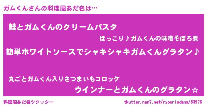 | 男性向けラノベタイトル風あだ名 | 『ガムくんの嫁は女の子じゃないと思った?』 |