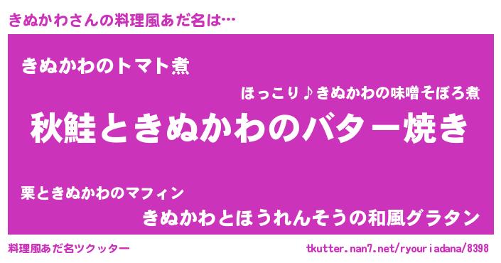| 胡散臭い通販商品みたいなあだ名 | 『来世でも幸せになれる健康食品…その名も「きぬかわ」』 |