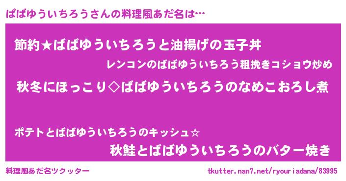 | 男性向けラノベタイトル風あだ名 | 『ばばゆういちろうに滅ぼされるだけの簡単なお仕事です』 |