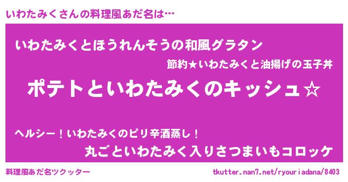 | 胡散臭い通販商品みたいなあだ名 | 『伝統あるサプリメント…その名も「いわたみく」』 |
