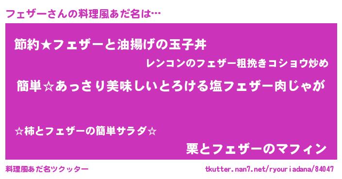 | 意味不明あだ名 | 『永久保存フェザー』『ペロリンフェザー』 |