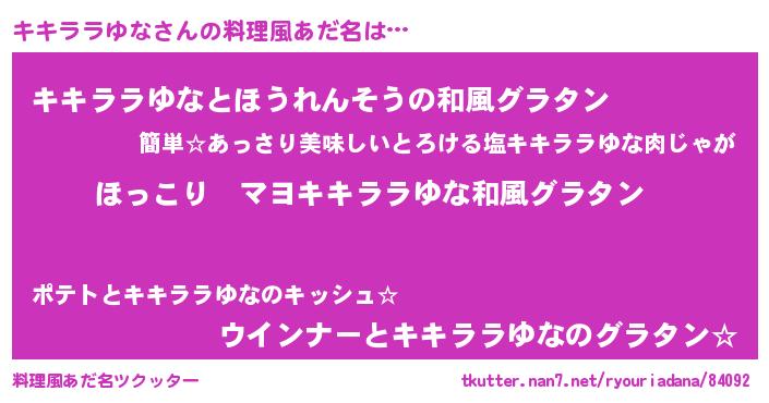 | 男性向けラノベタイトル風あだ名 | 『この素晴らしい世界にキキララゆなを!』 |