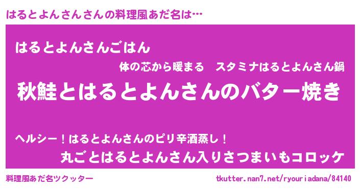 | 意味不明あだ名 | 『永久保存はるとよんさん』 |
