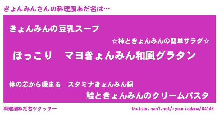 | 男性向けラノベタイトル風あだ名 | 『この素晴らしい世界にきょんみんを!』 |