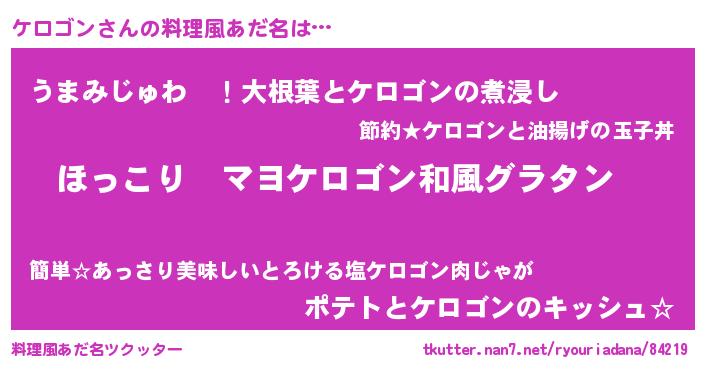 | 胡散臭い通販商品みたいなあだ名 | 『あなたにだけ特別に提供する100年もののヴィンテージワイン…その名も「ケロゴン」』 |
