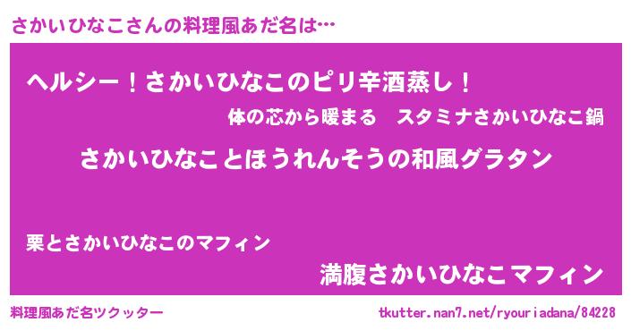 | 胡散臭い通販商品みたいなあだ名 | 『テレビで話題の高麗人参…その名も「さかいひなこ」』 |