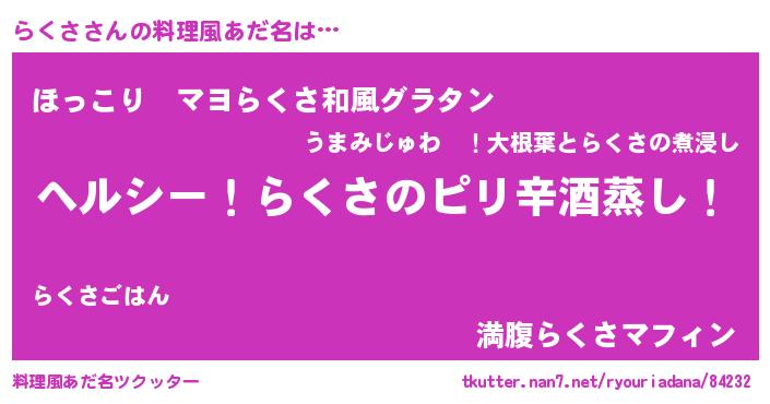 | ヘコむあだ名 | 『らくさ(笑)』『牛乳』『らくもー』 |