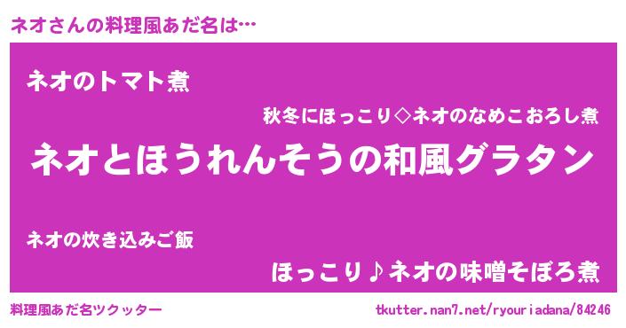 | 男性向けラノベタイトル風あだ名 | 『転生したらネオだった件』『ネオの憂鬱』 |