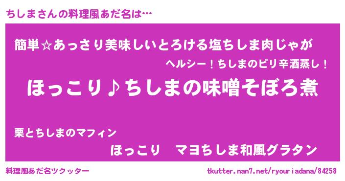 | 意味不明あだ名 | 『ペロリンちしま』『永久保存ちしま』 |