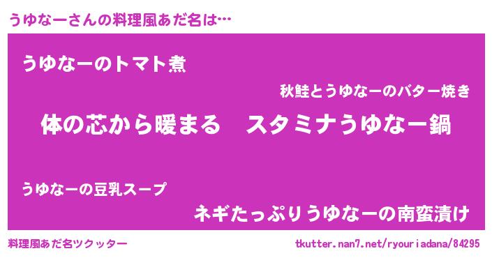 | ポケモン風あだ名 | 『ウユナダネ』『ウックウザ』 |