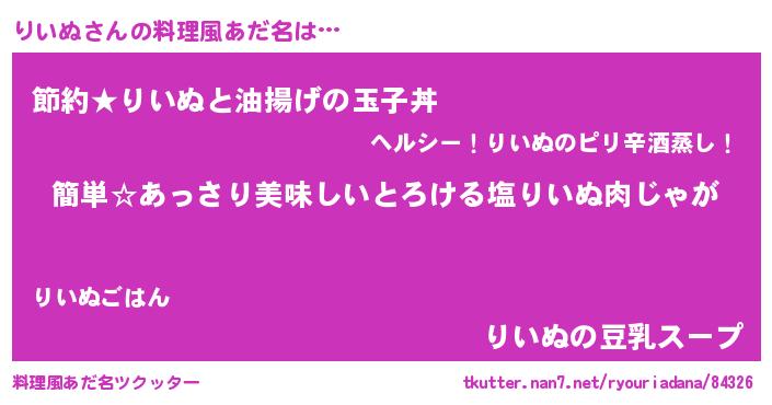 | 意味不明あだ名 | 『永久保存りいぬ』『ペロリンりいぬ』 |