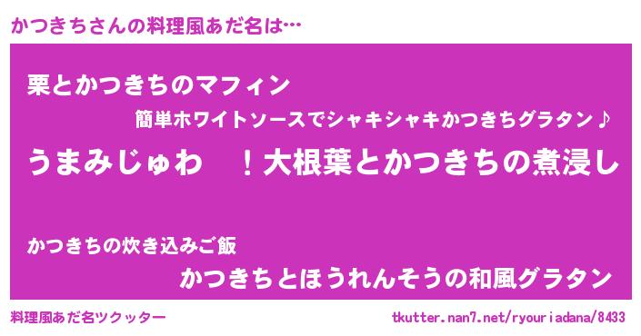 | 胡散臭い通販商品みたいなあだ名 | 『運命の人と巡り会える高級そうな皿…その名も「かつきち」』 |