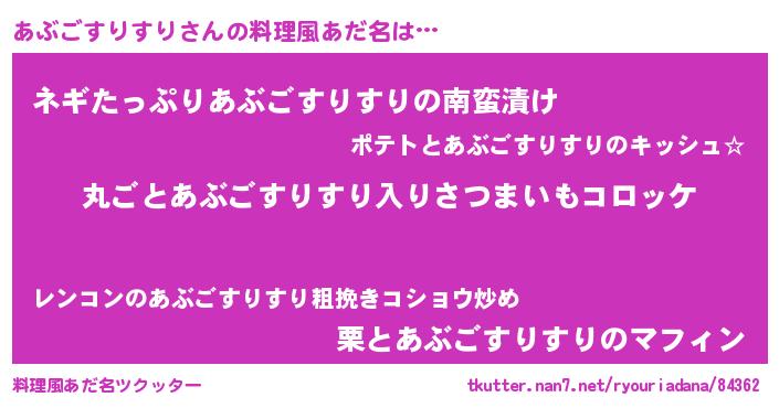 | 意味不明あだ名 | 『住所不定無職あぶごすりすり(86歳)』 |