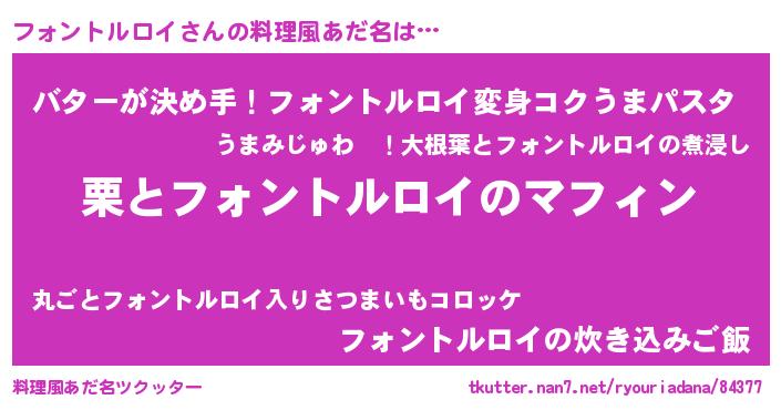 | 男性向けラノベタイトル風あだ名 | 『はたらくフォントルロイさま!』 |