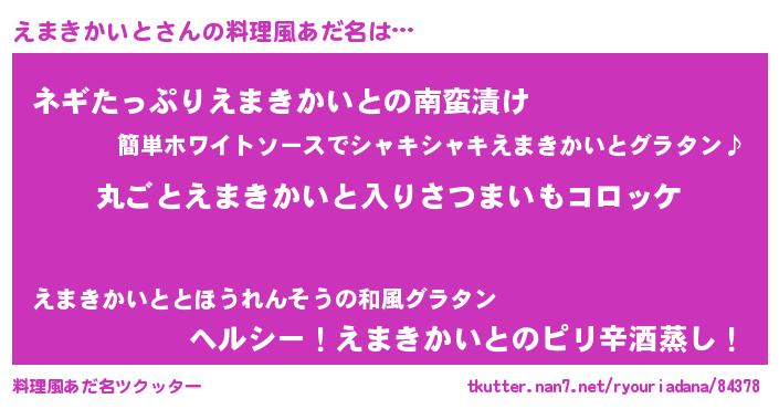 | 意味不明あだ名 | 『住所不定無職えまきかいと(47歳)』 |