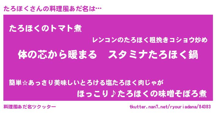 | 2回繰り返すあだ名 | 『たたろろ』『ぶらぶら』『たろたろ』 |