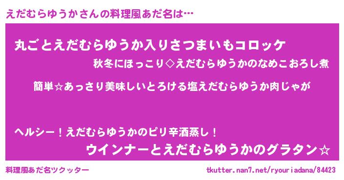 | ヘコむあだ名 | 『えだむらゆうか(爆)』『豆乳』 |